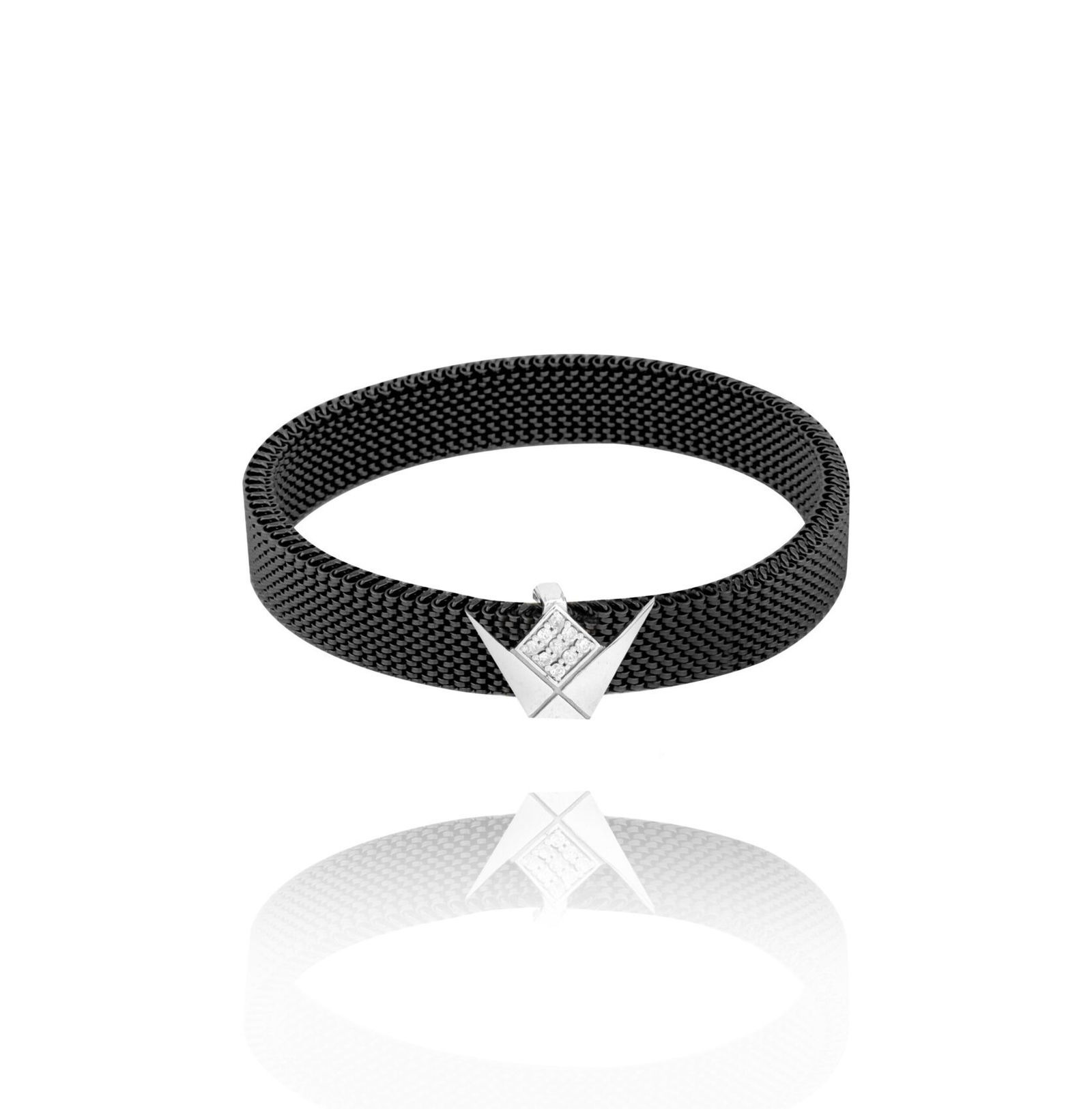Emblem Bracelet Stainless-steel, 18kt white gold, set with brilliant-cut white diamondGold Weight: 1.11 gDiamond: 0.08 ct