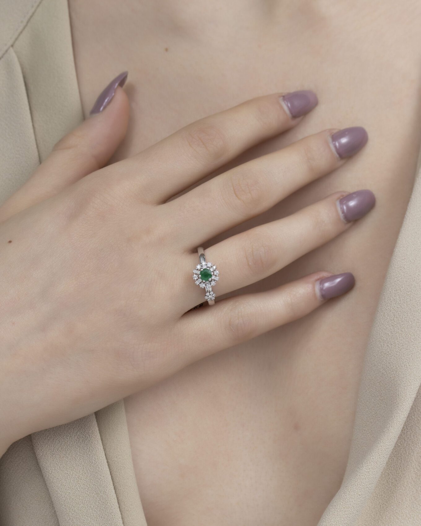 Classic Diamond Ring with Emerald