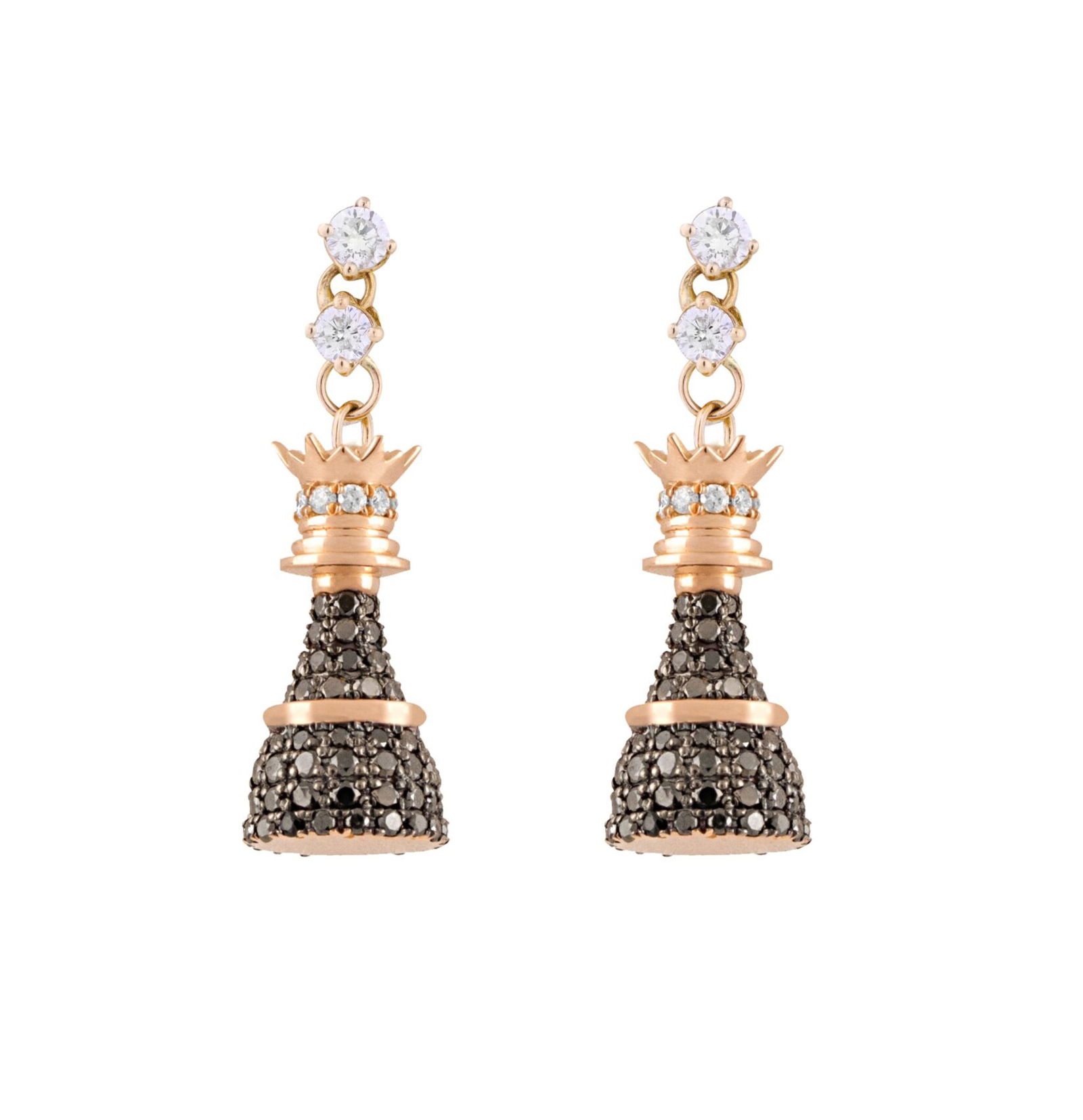 The Queen Earrings, 18kt rose gold, set with brilliant-cut white diamond and fancy-cut black diamondGold Weight: 5.400 gWhite Diamond: 0.510 ctBlack Diamond: 0.880 ct