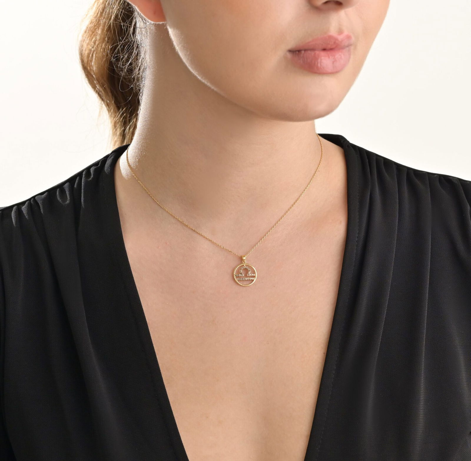 Zodiac Necklace Libra sign, 18kt yellow gold, set with fancy-cut brown diamondGold Weight: 2.73 gBrown Diamond: 0.19 ct